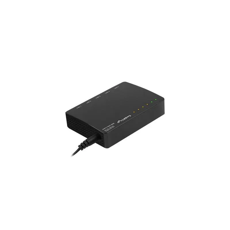 Switch niezarządzalny PoE+ Lanberg 5x 1Gb (4 porty PoE, 30W/port, max 60W). Typ obudowy: Desktop. Umożliwia podłączenie wielu urządzeń do sieci lokalnej.