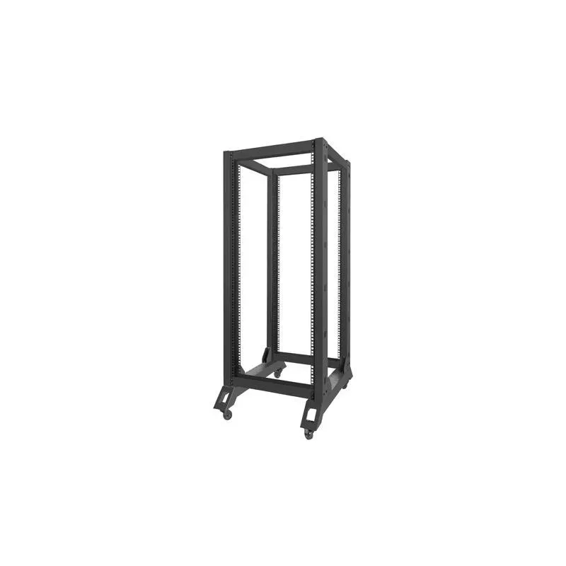 Stojak instalacyjny OPEN RACK 19" Lanberg OR01-6827-B to alternatywa dla szaf serwerowych 27U, rozwiązanie przeznaczone do budowy sieci, montażu okablowania oraz sprzętu w rozmiarze 19” o maksymalnym łącznym udźwigu do 600 kg. Może być stosowany w sieciach i serwerowniach zarówno w małych, jak i średnich firmach. Sprawdzi się również w instalacjach niskoprądowych takich jak sieci telewizji kablowych, systemy alarmowe, przeciwpożarowe, kontroli dostępu oraz systemy monitoringu CCTV i IP. Dzięki odpowiedniej konstrukcji, stojak umożliwia łatwy, samodzielny montaż. Całość wykonana jest z wysokiej jakości stali walcowanej, a przemieszczanie stojaka, nie stanowi problemu, dzięki wykorzystaniu kółek. Dodatkowo, w zestawie, załączone są dodatkowe akcesoria, takie jak nóżki, kółka z hamulcem, oraz śruby M6. Rodzaj szafy: Open Rack Akcesoria w zestawie: Nóżki; Kółka z hamulcem; Śruby M6 Głębokość montażowa [mm]: 610 Grubość bocznego panelu [mm]: 1,5 Grubość szyn montażowych [mm]: 1,5 Grubość pozostałych elementów [mm]: 1,5