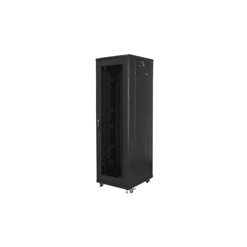 - Wysokość (górny panel - dolny panel): 1968.5 mm, - Wysokość (górny panel - podłoże): 2041.5 mm, - Wysokość (górny panel - podłoże uwzględniając śruby): 2047.5 mm, - Wymiary opakowań (S x G x W): Góra i dół - 63x190x10 cm, Drzwi: 62x190x10 cm, Rama: 62x198x25.4 cm, - Panel podłogowy: 4 kółka z hamulcem + regulowane nóżki, - Wewnętrzna szerokość rozstawu między szynami rackowymi: 450 mm, - Szerokość rozstawu między otworami szyn rackowych: 465 mm, - Zewnętrzna szerokość między szynami rackowymi: 500 mm, - Ładowność: Do 800 KG, - Klasa szczelności: IP20, - Panel wentylacyjny: w zestawie 4 wentylatory 230V w górnej obudowie, - Rodzaj drzwi: Przednie - Perforowane, Tylnie - Perforowane, - Zgodność ze standardami: ANSI/EIA RS-310D, IEC297-2, DIN41494; PART1 & PART7, ETSI, - Materiał wykonania: Wysokiej jakości stal walcowana, malowana proszkowo, - Grubość drzwi: 5.0 mm, - Grubość blachy: pionowe szyny montażowe - 2,00 mm; profil montażowy - 2,00 mm; reszta - 1,50 mm - 1,20 mm, - Otwory kablowe: Góra, Dół (regulowany), - W zestawie: Akcesoria do mocowania, zamek drzwi przednich i tylnych dwa zamki paneli bocznych, 20 śrub M6.
