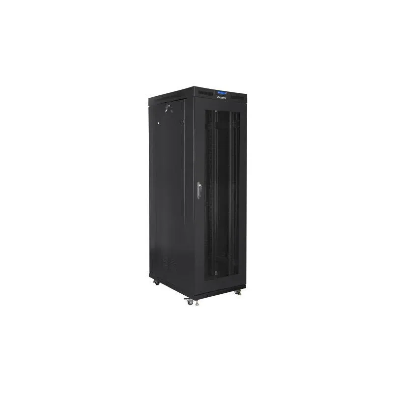 - Wymiary szafy (S x G x W): 800x1000x2097.5 mm, - Wysokość (górny panel - dolny panel): 2018.5 mm, - Wysokość (górny panel - podłoże): 2091.5 mm, - Wysokość (górny panel - podłoże uwzględniając śruby): 2097.5 mm, - Wyświetlacz LCD: Tak - Panel podłogowy: 4 kółka z hamulcem + regulowane nóżki, - Wewnętrzna szerokość rozstawu między szynami rackowymi: 450 mm, - Szerokość rozstawu między otworami szyn rackowych: 465 mm, - Zewnętrzna szerokość między szynami rackowymi: 500 mm, - Ładowność: Do 800 KG, - Klasa szczelności: IP20, - Panel wentylacyjny: w zestawie 4 wentylatory 230V w górnej obudowie, - Rodzaj drzwi: Przednie - Perforowane, Tylnie - Perforowane, - Zgodność ze standardami: ANSI/EIA RS-310D, IEC297-2, DIN41494 PART1 & PART7, ETSI, - Materiał wykonania: Wysokiej jakości stal walcowana, malowana proszkowo, - Grubość drzwi: 5.0 mm, - Grubość blachy: pionowe szyny montażowe - 2,00 mm profil montażowy - 2,00 mm; reszta - 1,50 mm - 1,20 mm, - Otwory kablowe: Góra, Dół (regulowany), - W zestawie: Akcesoria do mocowania, zamek drzwi przednich i tylnych dwa zamki paneli bocznych, 20 śrub M6, 2 pionowe organizery kabli x2.