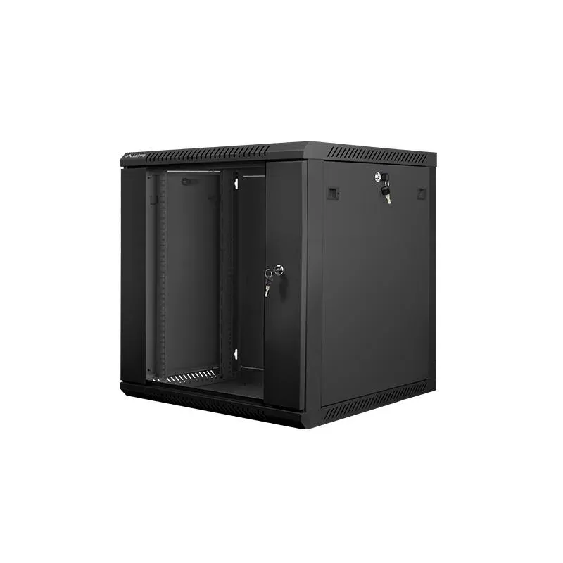 Kolor: Czarny RAL9004 Wysokość: 12U Ładowność: Do 60 KG Klasa szczelności: IP20 Rodzaj drzwi: Szyba hartowana Zgodność ze standardami: ANSI/EIA RS-310-D, IEC297-2, DIN41494; PART1 & PART7, ETSI Materiał wykonania: Wysokiej jakości stal walcowana, malowana proszkowo Otwór na wentylator: Tak, 120mm, 110V lub 220V Grubość blachy: Profil montażowy - 1,50mm, Reszta - 1,2mm Otwory kablowe: Góra, Dół W zestawie: Akcesoria do mocowania, zestaw do uziemienia zamek drzwi przednich, dwa zamki paneli bocznych, 10 śrub M6