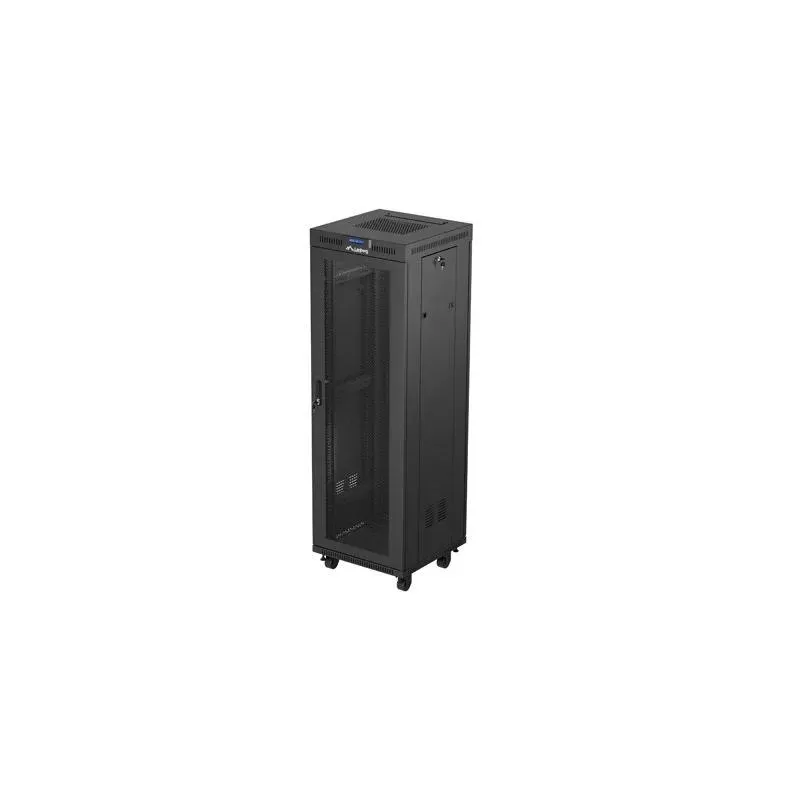 Montaż Do samodzielnego montażu Rodzaj drzwi przednich Perforowane Rodzaj drzwi tylnych Perforowane Ilość miejsc na wentylatory 2 Ilość pionowych szyn 4 Termostat Tak Panel LCD Tak Kolor palety RAL RAL9004 Klasa szczelności IP20 Grubość drzwi przednich 1.2 mm Grubość drzwi tylnych 1.2 mm Grubość górnego & dolnego panelu 1.5 mm Grubość bocznego panelu 1.2 mm Grubość szyn montażowych 2 mm Grubość ramy 1.5 mm Grubość pozostałych elementów 1.5 mm Wysokość bez kółek 1795 mm Standard ANSI/EIA RS-310-D IEC297-2:1982 DIN 41491/PART 1 DIN 41494/PART 7 ETSI Szczegóły uziemienia Drzwi przednie Rama Drzwi tylne Akcesoria w zestawie Śruby M6 Zamek przedni Zamki boczne Zamek tylny Kabel uziemiający Kółka z hamulcem Nóżki Termostat Panel wentylacyjny (2 wentylatory)