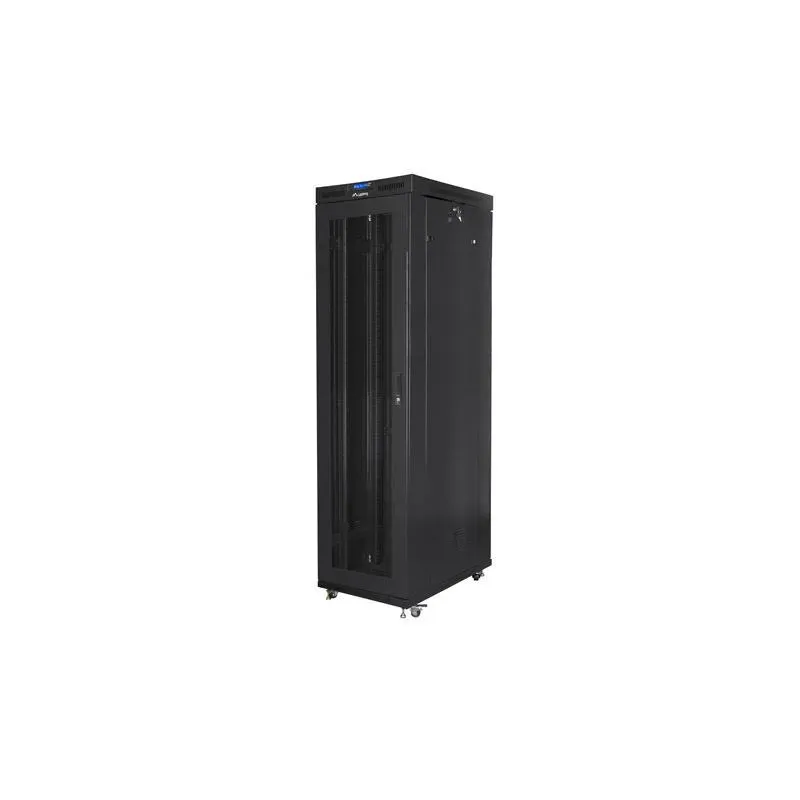 Kolor: Czarny RAL9004, Rodzaj drzwi przednich: Perforowane Rodzaj drzwi tylnych: Perforowane Typ drzwi: Jednoskrzydłowe Ilość miejsc na wentylatory: 6 Ilość pionowych szyn: 4 Panel LCD: Tak Klasa szczelności: IP20 Grubość drzwi przednich: 1.2 mm Grubość drzwi tylnych: 1.2 mm Grubość górnego & dolnego panelu: 1.2 mm Grubość bocznego panelu: 1.2 mm Grubość szyn montażowych: 2 mm Grubość ramy: 1.2 mm Grubość pozostałych elementów: 1.2 mm Grubość pozostałych elementów: 1.2 mm Szczegóły uziemienia: Drzwi przednie, Drzwi tylne, Rama Standard: ANSI/EIA RS-310-D DIN 41491/PART 1 DIN 41494/PART 7 ETSI IEC297-2:1982 Akcesoria w zestawie: Kółka z hamulcem Nóżki Panel wentylacyjny (4 wentylatory) Pionowy organizer kabli x2 Śruby M6 Termostat Zamek przedni Zamek tylny Zamki boczne Kabel uziemiający