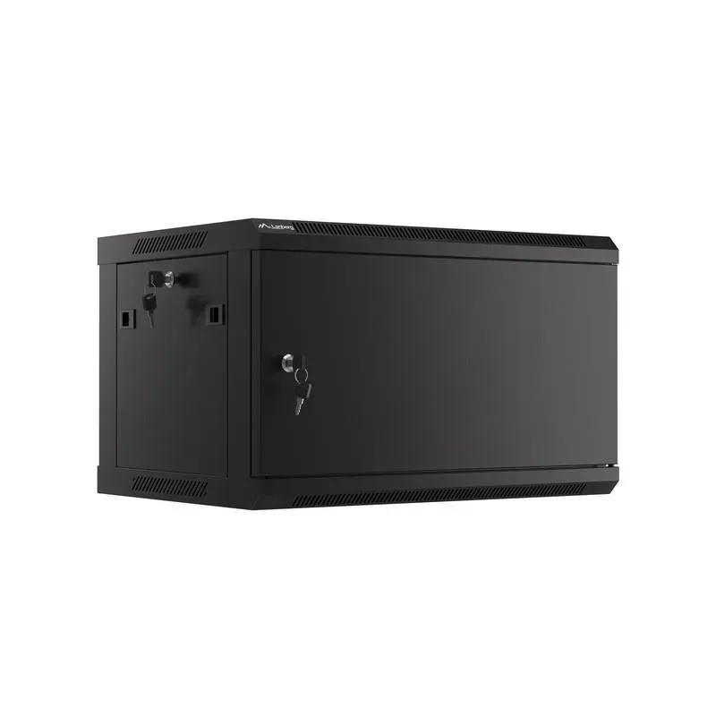 Szafa instalacyjna Rack wisząca 19" 6U 600x450 czarna drzwi metalowe Lanberg (flat pack) z kategorii szafy i akcesoria. Kolor: Czarny.