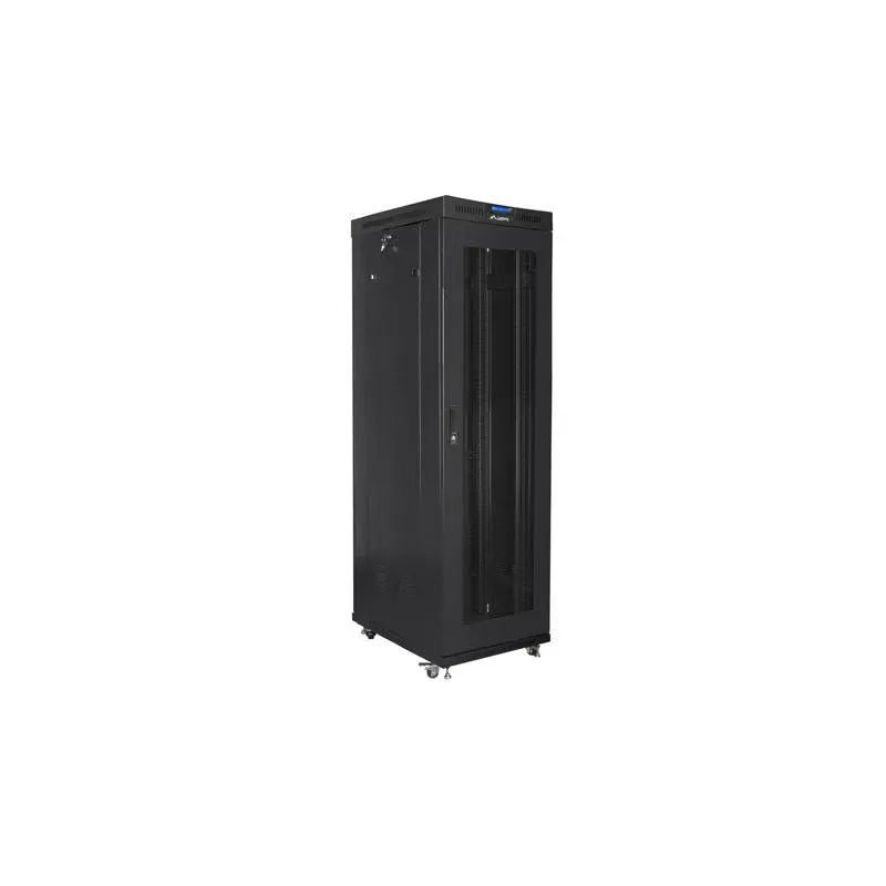 - Wymiary szafy (S x G x W): 600x1000x2127.5 mm, - Wysokość (górny panel - dolny panel): 2018.5 mm, - Wysokość (górny panel - podłoże): 2121.5 mm, - Wysokość (górny panel - podłoże uwzględniając śruby): 2127.5 mm, - Wyświetlacz LCD: Tak, - Panel podłogowy: 4 kółka z hamulcem + regulowane nóżki, - Wewnętrzna szerokość rozstawu między szynami rackowymi: 450 mm, - Szerokość rozstawu między otworami szyn rackowych: 465 mm, - Zewnętrzna szerokość między szynami rackowymi: 500 mm, - Ładowność: Do 1200 KG, - Klasa szczelności: IP20, - Panel wentylacyjny: w zestawie 4 wentylatory 230V w górnej obudowie, - Rodzaj drzwi: Przednie - Perforowane, Tylnie - Perforowane, - Zgodność ze standardami: ANSI/EIA RS-310D, IEC297-2, DIN41494; PART1 & PART7, ETSI, - Materiał wykonania: Wysokiej jakości stal walcowana, malowana proszkowo, Otwory kablowe: Góra, Dół (regulowany), - W zestawie: Akcesoria do mocowania, zamek drzwi przednich i tylnych, dwa zamki paneli bocznych, 20 śrub M6, 4x kółka, 4x stopy, zestaw uziemiający.