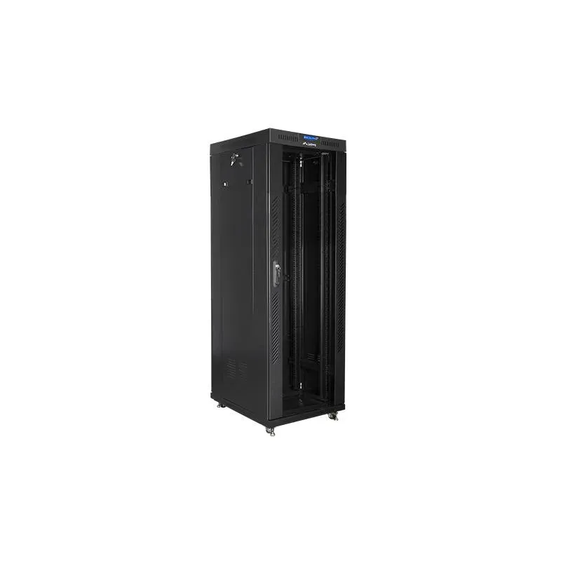 - Wymiary szafy (S x G x W): 600x800x1876 mm, - Wysokość (górny panel - dolny panel): 1797 mm, - Wysokość (górny panel - podłoże): 1870 mm, - Wysokość (górny panel - podłoże uwzględniając śruby): 1876 mm, - Wyświetlacz LCD: Tak, - Panel podłogowy: 4 kółka z hamulcem + regulowane nóżki, - Wewnętrzna szerokość rozstawu między szynami rackowymi: 450 mm, - Szerokość rozstawu między otworami szyn rackowych: 465 mm, - Zewnętrzna szerokość między szynami rackowymi: 500 mm - Ładowność: Do 800 KG - Klasa szczelności: IP20, - Panel wentylacyjny: w zestawie 4 wentylatory 230V w górnej obudowie, - Rodzaj drzwi: Przednie - Szyba hartowana, Tylnie - Stalowe - Zgodność ze standardami: ANSI/EIA RS-310D, IEC297-2, DIN41494; PART1 & PART7, ETSI, - Materiał wykonania: Wysokiej jakości stal walcowana, malowana proszkowo, - Grubość drzwi: 5.0 mm - Grubość blachy: pionowe szyny montażowe - 2,00 mm; profil montażowy - 2,00 mm; reszta - 1,50 mm - 1,20 mm, - Otwory kablowe: Góra, Dół (regulowane), - W zestawie: Akcesoria do mocowania, zamek drzwi przednich i tylnych, dwa zamki paneli bocznych, 20 śrub M6.