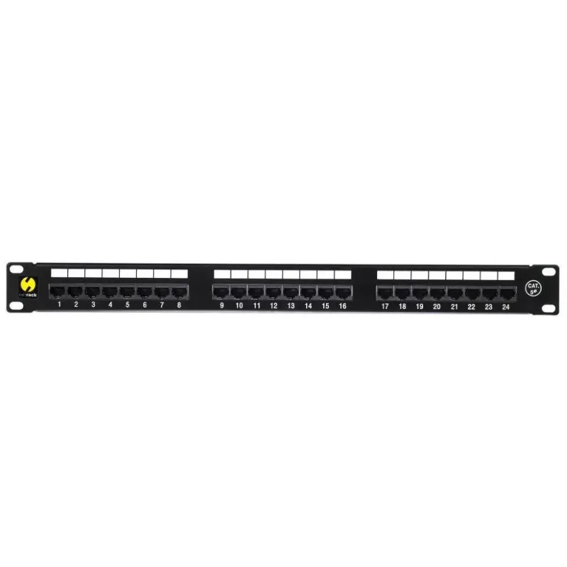 Porty rozmieszczone w 3 grupach po 8 Złącza do podłączenia wtyków z przodu RJ45 Złącza do podłączenia przewodów z tyłu typu Krone Grzebień do zamocowania każdego przewodu Panel przedni wyposażony w pole identyfikacyjne portów - białe Liczba portów - 24