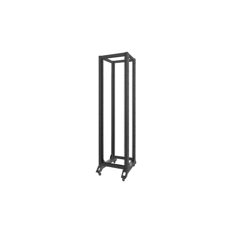 Stojak instalacyjny OPEN RACK 19" Lanberg OR01-6842-B to alternatywa dla szaf serwerowych 42U, rozwiązanie przeznaczone do budowy sieci, montażu okablowania oraz sprzętu w rozmiarze 19” o maksymalnym łącznym udźwigu do 600 kg. Może być stosowany w sieciach i serwerowniach zarówno w małych, jak i średnich firmach. Sprawdzi się również w instalacjach niskoprądowych takich jak sieci telewizji kablowych, systemy alarmowe, przeciwpożarowe, kontroli dostępu oraz systemy monitoringu CCTV i IP. Dzięki odpowiedniej konstrukcji, stojak umożliwia łatwy, samodzielny montaż. Całość wykonana jest z wysokiej jakości stali walcowanej, a przemieszczanie stojaka, nie stanowi problemu, dzięki wykorzystaniu kółek. Dodatkowo, w zestawie, załączone są dodatkowe akcesoria, takie jak nóżki, kółka z hamulcem, oraz śruby M6. Rodzaj szafy: Open Rack Maksymalne obciążenie [kg]: 600 Akcesoria w zestawie: Nóżki; Kółka z hamulcem; Śruby M6 Głębokość montażowa [mm]: 610 Grubość bocznego panelu [mm]: 1,5 Grubość szyn montażowych [mm]: 1,5 Grubość pozostałych elementów [mm]: 1,5