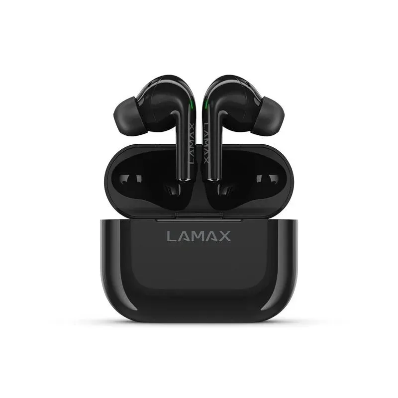 Bezprzewodowe słuchawki TWS, douszne, wytrzymałość 8h/1 ładowanie,całkowita wytrzymałość 40h, Bluetooth 5.1, zasięg do 10 metrów, sterowanie dotykowe, USB-C, technologia LAMAX BeatBass®, automatyczne parowanie, tryb gry, małe etui ładujące, wskaźnik ładowania, kodeki AAC i SBC, obsługa asystentów głosowych, zapasowe słuchawki Typ słuchawek: Douszne, true wireless Technologia bezprzewodowa: Bluetooth 5.1 Obsługiwane kodeki: AAC, SBC Pojemność baterii stacji ładującej: 500 mAh Pojemność baterii słuchawek: 45 mAh Całkowity czas słuchania: 40 godz. Czas ładowania słuchawek od 0% do 100%: 1 godzina Czas ładowania etui od 0% do 100%: 2 godziny Łączność: USB-C Zintegrowany mikrofon. Sterowanie handsfree za pomocą powierzchni dotykowej na słuchawce. Obu słuchawek można używać osobno. Można odebrać, zakończyć lub odrzucić połączenie. Wymiary stacji ładującej: 46 x 56 x 23 mm Waga: 4 g (jedna słuchawka), 43 g (razem ze stacją ładującą)