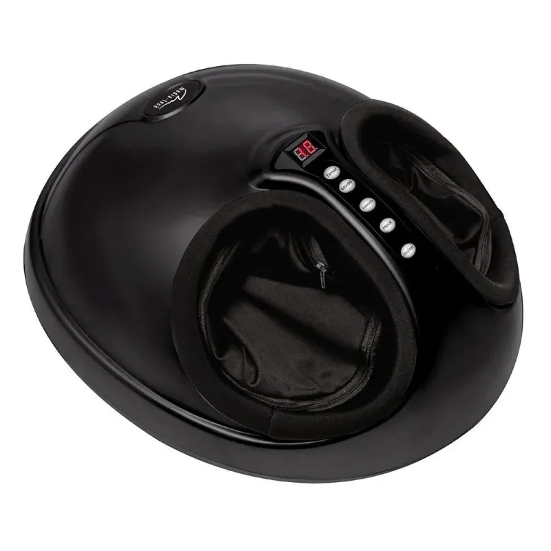Urządzenie do rozgrzewającego i relaksującego masażu shiatsu i presoterapii Efekt profesjonalnego masażysty: akupresura, masaż kompresyjny, skrobanie, 3 tryby masażu 3 poziomy intensywności Delikatne ogrzewanie stóp (ok. 45°C) Regulowany czas masażu Mocowane na suwak, łatwe w czyszczeniu pokrowce Nawijacz kabla zasilającego ułatwiający przechowywanie Stabilna podstawa Dla stóp w rozmiarze do 44 Zasilanie: ~230V, 50Hz, 45W