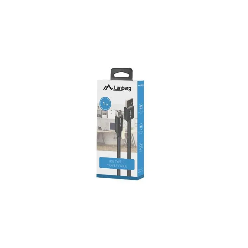 Kabel USB 2.0 Lanberg Type-C(M) - AM 1m czarny QC 3.0 BOX to kabel USB o długości 1.00 m. Umożliwia podłączenie i transfer danych między urządzeniami.
