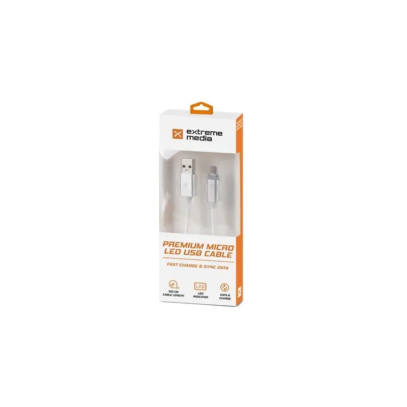 Kabel Natec Extreme Media micro USB-B - USB-A M/M 1m srebrny LED z kategorii usb. Interfejs: USB 2.0, kolor: Srebrny. Kup online w PartsPC.pl z szybka wysylka.