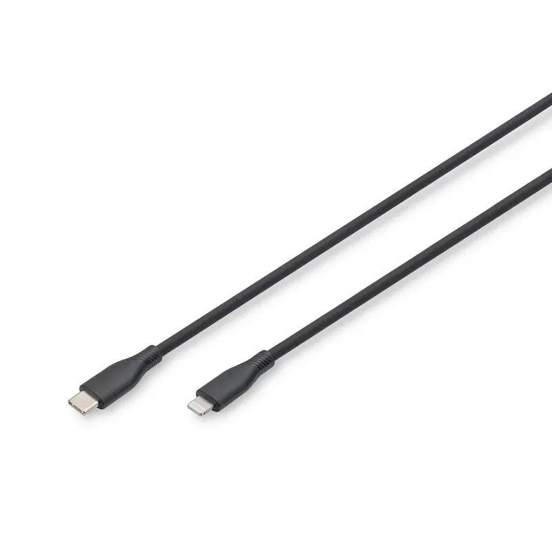 Kabel zasilający DIGITUS silikonowy USB-C - Lightning, USB 2.0 60W, certyfikat MFI, 2m czarny z kategorii usb. Interfejs: USB-C - Lightning, kolor: Czarny.