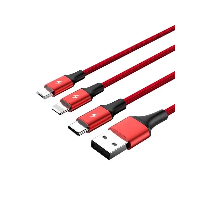 Kabel USB 2.0 Unitek C4049RD, 3w1 USB - USB typ C/microUSB/Lightning, 1,2m z kategorii usb. Kolor: Czerwono-czarny. Sprawdz specyfikacje i zamow w PartsPC.pl.