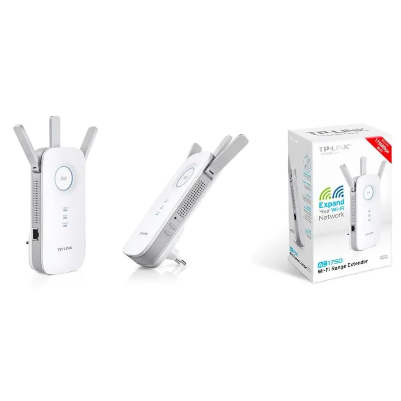 Przycisk RE (Range Extender), przycisk Reset, przycisk LED, Wyłącznik Trzy regulowane anteny zewnętrzne zapewniają optymalny zasięg sieci 1x 10/100/1000M Port Ethernet (RJ45) Jednoczesne wzmacnianie dwóch pasm (2,4/5GHz) Certyfikaty CE, FCC, RoHS Windows 98SE, NT, 2000, XP, Vista, 7, 8, Mac® OS, NetWare®, UNIX® lub Linux Rozszerza zasięg sieci bezprzewodowej zapewniając niezwykłą wydajność łącza 450Mb/s(2,4GHz) + 1300Mb/s(5GHz)=połączenie o łącznej prędkości do 1750Mb/s Współpracuje z każdym routerem bezprzewodowym oraz punktem dostępowym