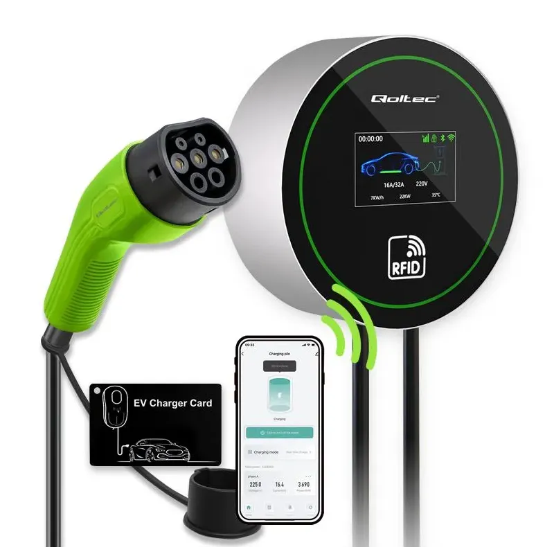 Stacja ładowania Qoltec EV 2w1 Typ2 | 22kW | Wi-Fi | LCD | 3 fazy | Wallbox