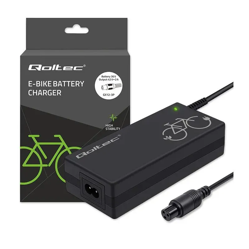 Ładowarka Qoltec do roweru elektrycznego 36V | 42V | 2A | GX12-3Pin +kabel