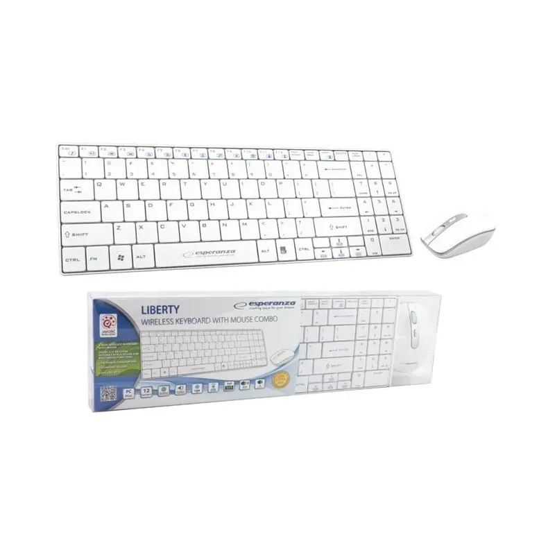 Wygodna, miła w dotyku, najnowszej generacji klawiatura z myszką. Elegancki wygląd, niskie klawisze klawiatury. Gładka, błyszcząca powierzchnia myszki. Klawiatura posiada dodatkowe, multimedialne klawisze funkcyjne. Klawiatura: Mały odbiornik, technologia 2.4GHz Zasilanie 2 baterie AAA (nie załączone w opakowaniu) Myszka: 4 przyciski Przycisk zmiany rozdzielczości (DPI) Cicha rolka przewijania Zasilanie 2 baterie AAA (nie załączone w opakowaniu) Współpracuje z systemami: Win98/2000/ME/NT/XP/VISTA/7/8 Wilgotność otoczenia: 20%~90% Zakres temperatur pracy: 0oC-40oC Zestaw współpracuje zarówno z notebookami jak i komputerami stacjonarnymi. Litery oraz symbole zostały nadrukowane w technologii UV. Są pokryte specja warstwą ochronną nadającą im wysoką odporność na ścierani Wykonana z wysokiej jakości materiałów odpornych na elektryzowanie się. Zabezpieczona przed generowaniem interferencji elektromagnetycznych. Obsługuje wszystkie wersje językowe, wymaga złącza USB 2.0