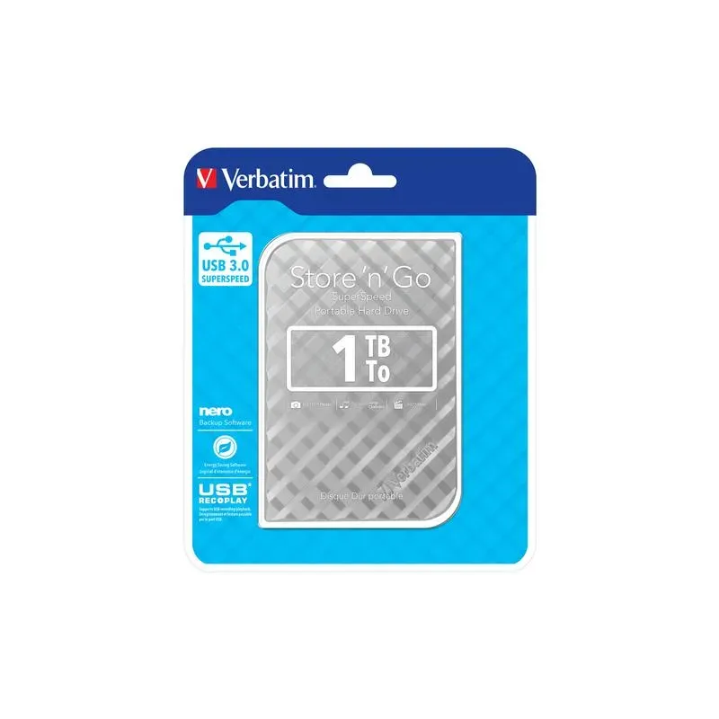 visibility favorite favorite_border Dysk zewnętrzny Verbatim 1TB Store 'n' Go Alu Slim 2.5" (6,35cm) srebrny 307,00 zł Dodaj do koszyka